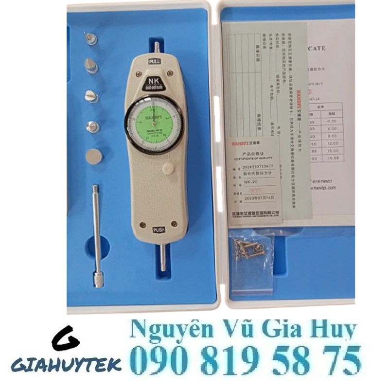 • Đo lực đẩy: Sử dụng đầu đo dạng phẳng hoặc nhọn để ấn vào vật thể. Kim đồng hồ sẽ hiển thị lực nén tác động lên vật.